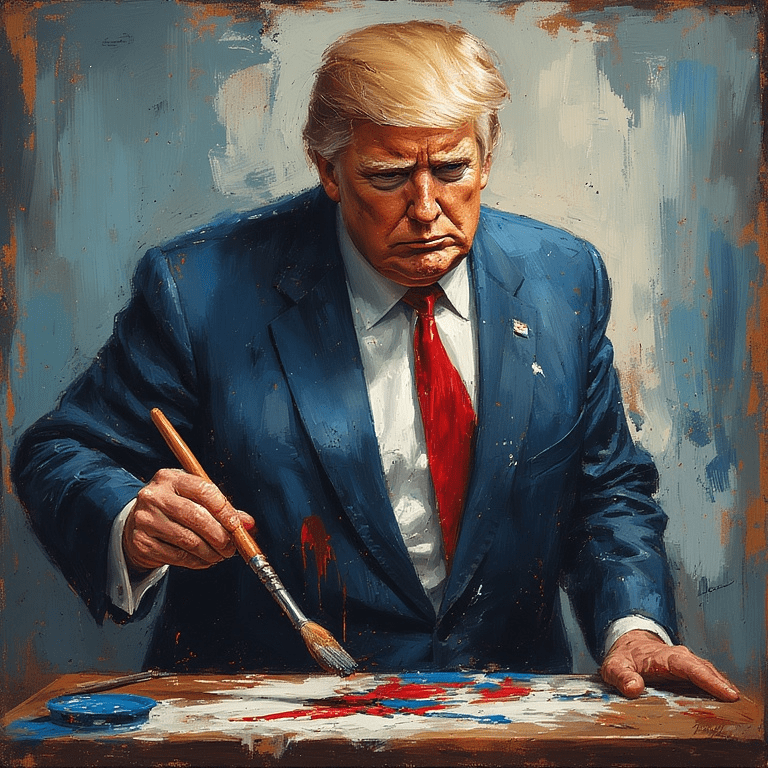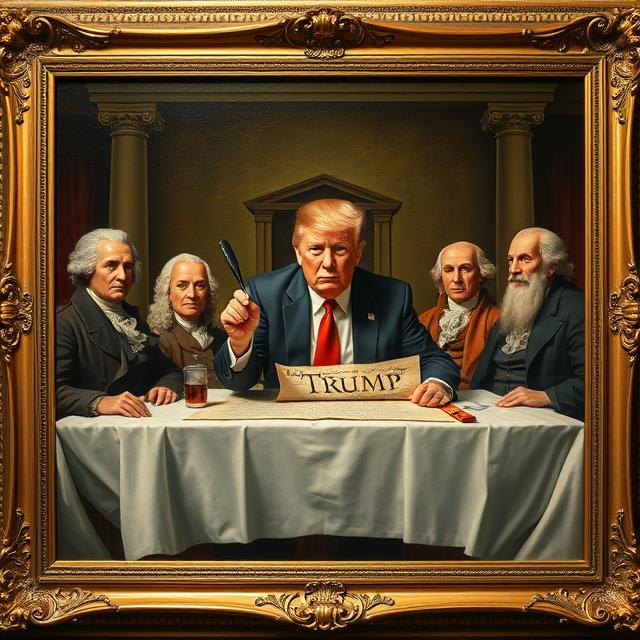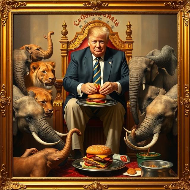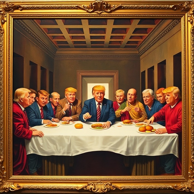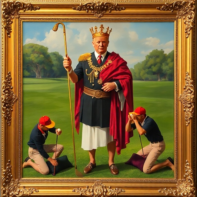 So I just keep adding more and more portraits of myself all around this white house. Have I told you how old and smelly it is? It needed a lot of snazzing up. I have been doing all kinds of renovations to the place. The famous oval office has now become the more famous GOLD AMBUSH OFFICE where I keep all my gold knick-knacks that people just give to me and also where I lure world leaders into just too suddenly snap on them and ask if they have ever said THANK YOU to myself or maybe the america? It’s like a spider and fly kind of thing. I am the spider though and they get caught up in my weave. I paved over the really smelly white house rose garden so I can set up my pop up MAGAid tents and sell stuff to the tourists and people who worship me. My next bigly concept is adding a whole ballroom to the white house. DOESN’T MATTER THAT THERE IS ALREADY ONE THERE. This one is going to be really special. The Trump Ballroom it’s going to be called. Anyway, I need a whole slew of new paintings to decorate this 1500% better ballroom that I have planned. I can’t wait until it is done. Do you know how many events I plan to host and charge for in it? So many. So here are some of my concepts for some new and quite frankly much better paintings than what we already have in this old and smelly building. I painted these all by myself.